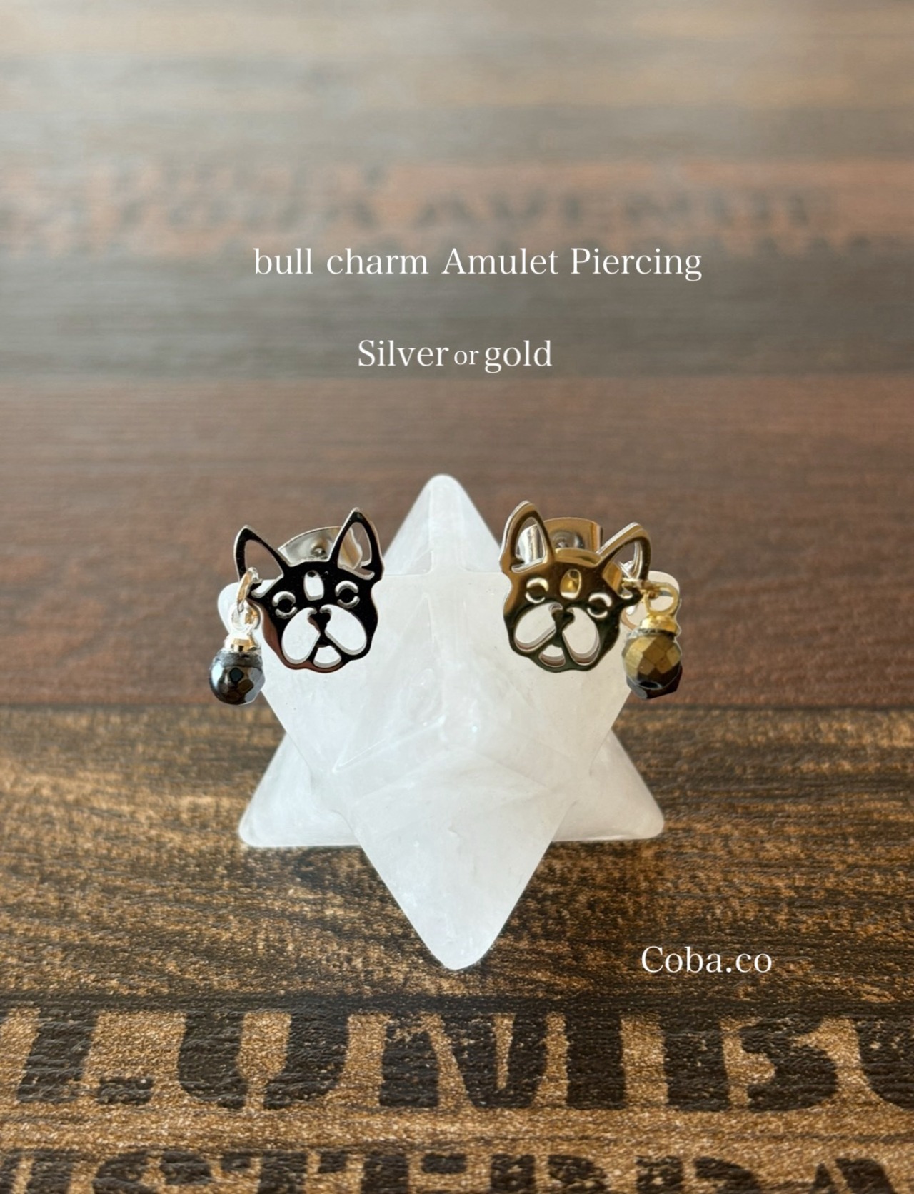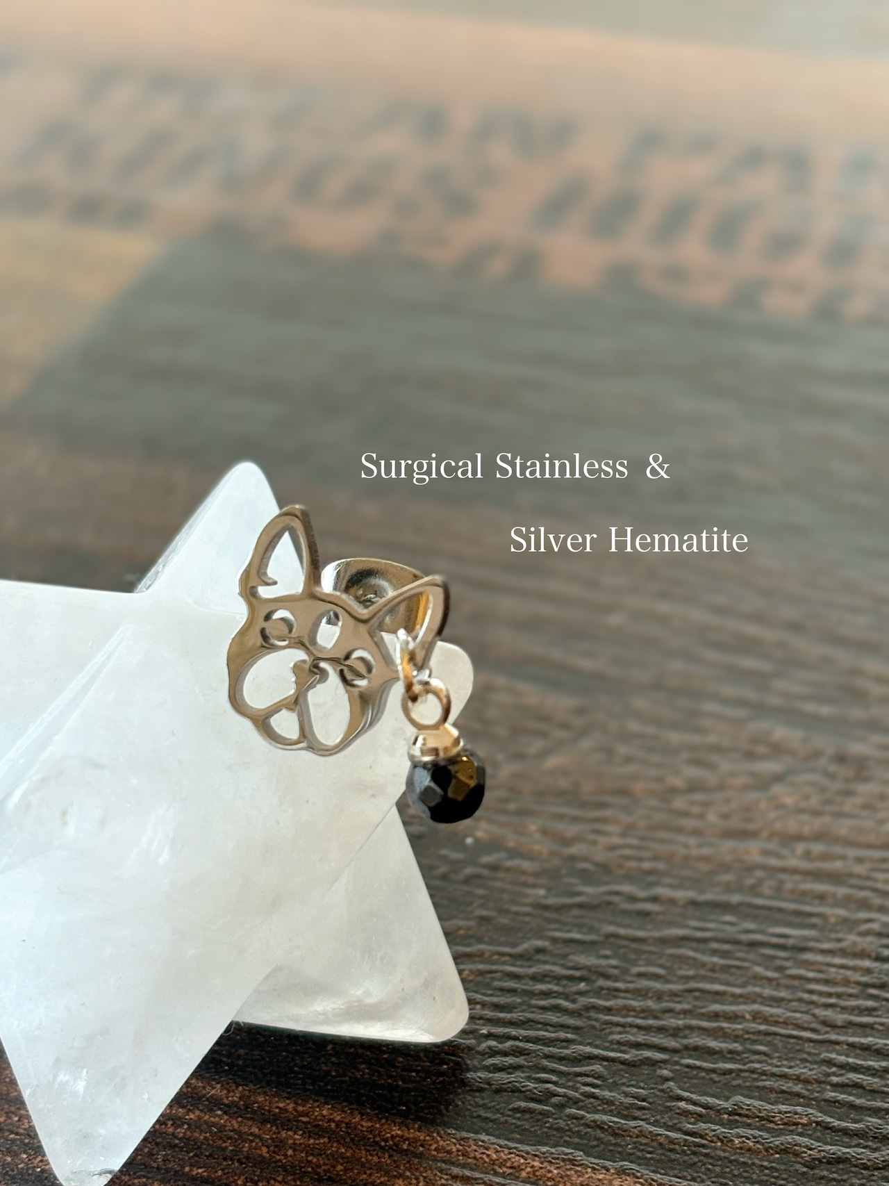 コチラの商品はbullさんとヘマタイト石を合わせたピアスになります。