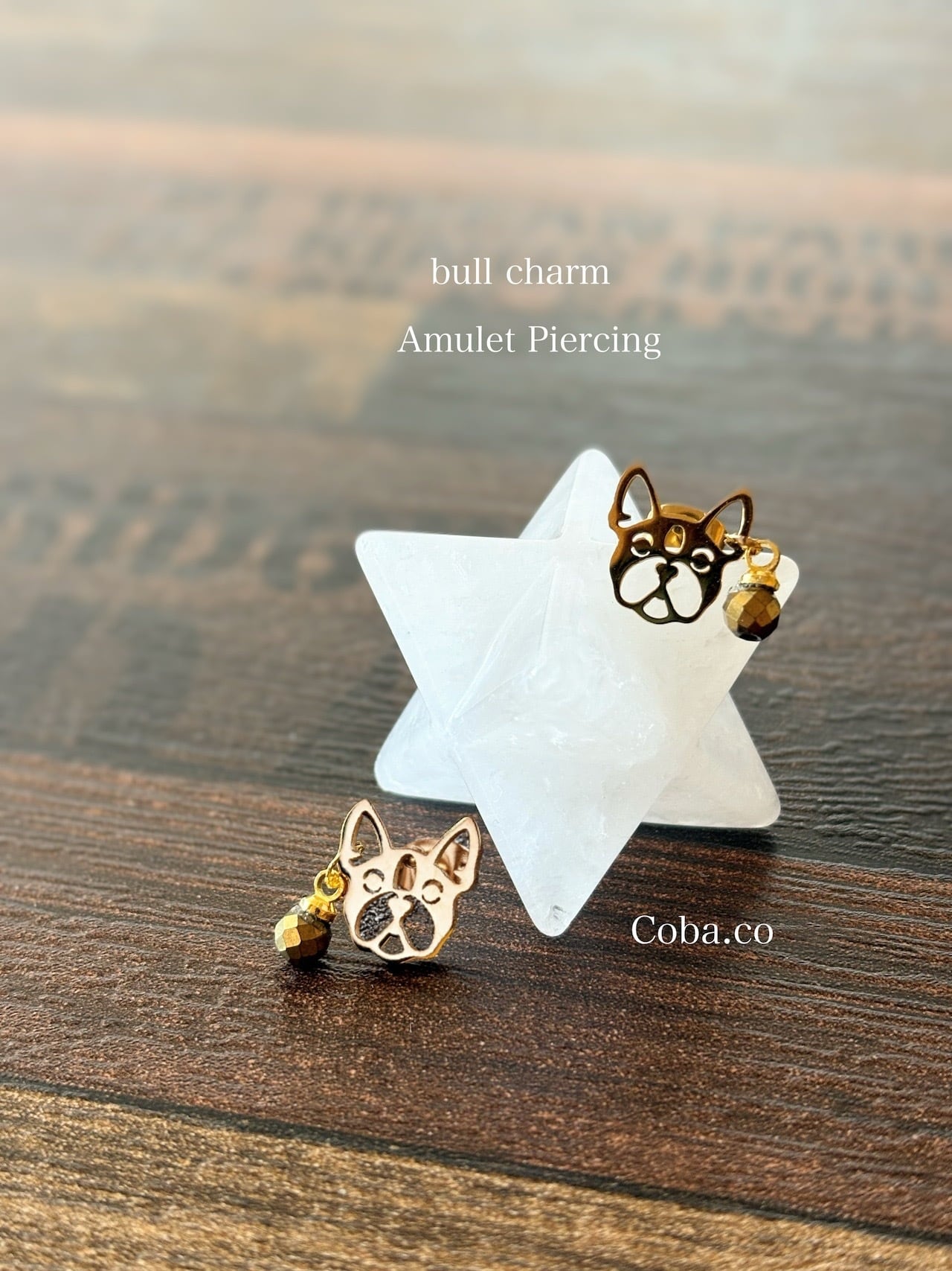 コチラの商品はbullさんとヘマタイト石を合わせたピアスになります。