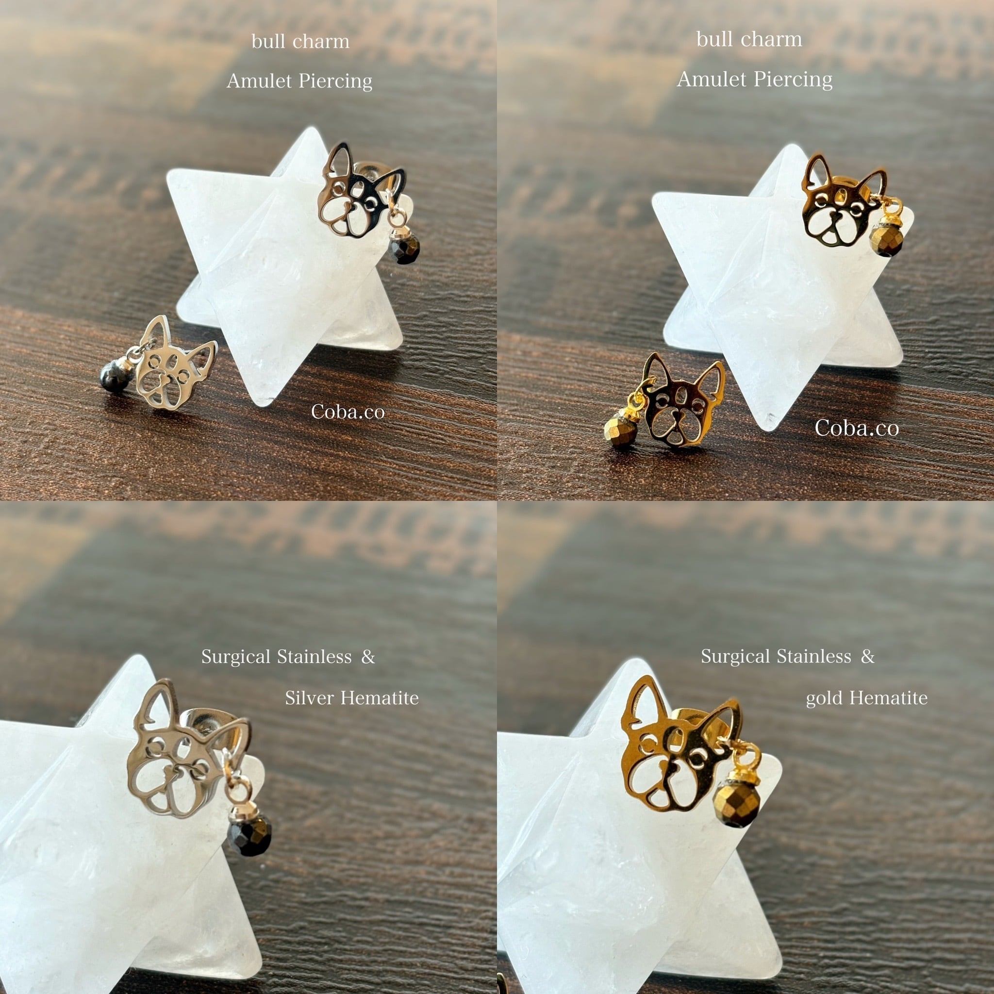 コチラの商品はbullさんとヘマタイト石を合わせたピアスになります。