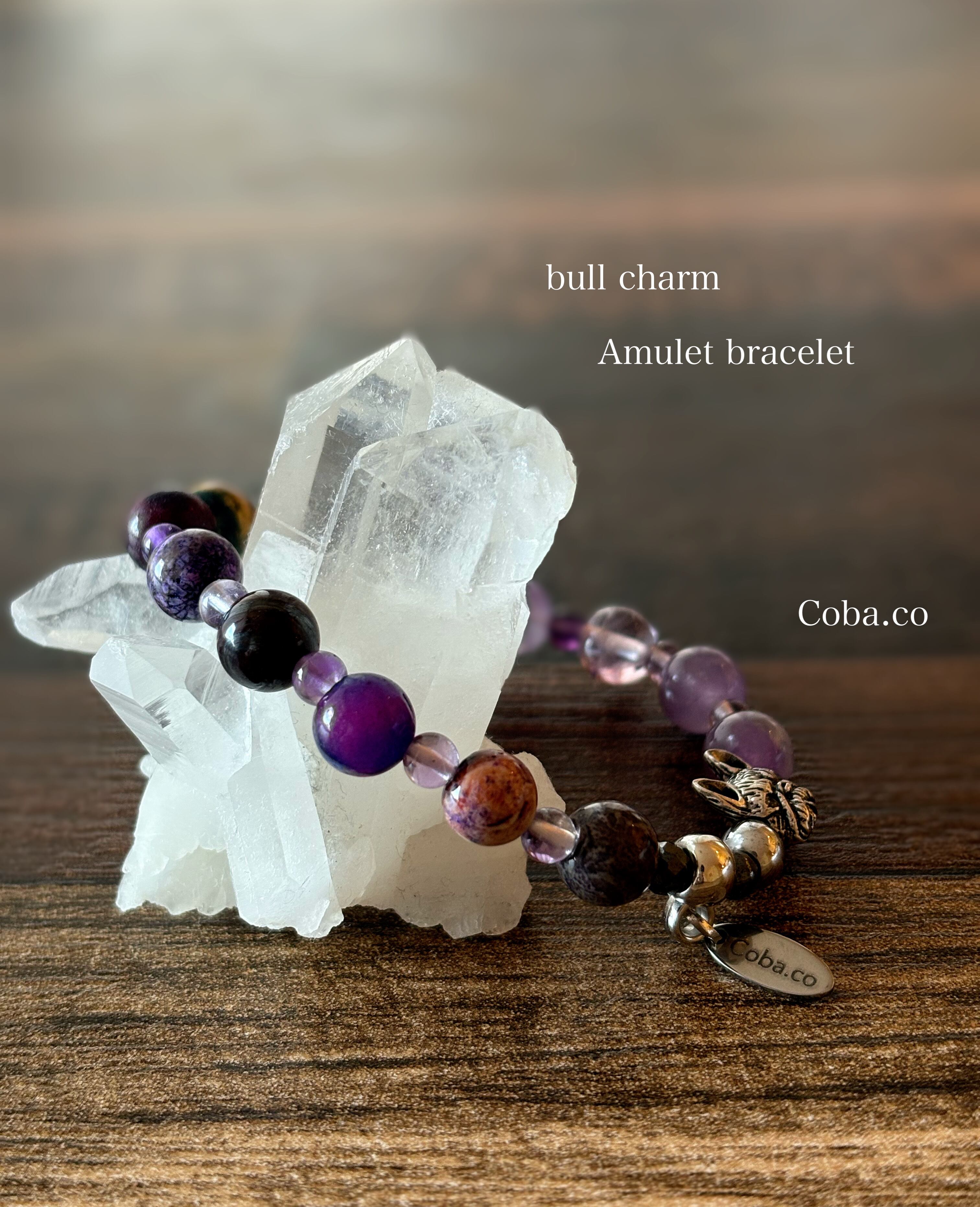 ⭐︎こちらはbullチャームと天然石を合わせたAmulet bracelet です。