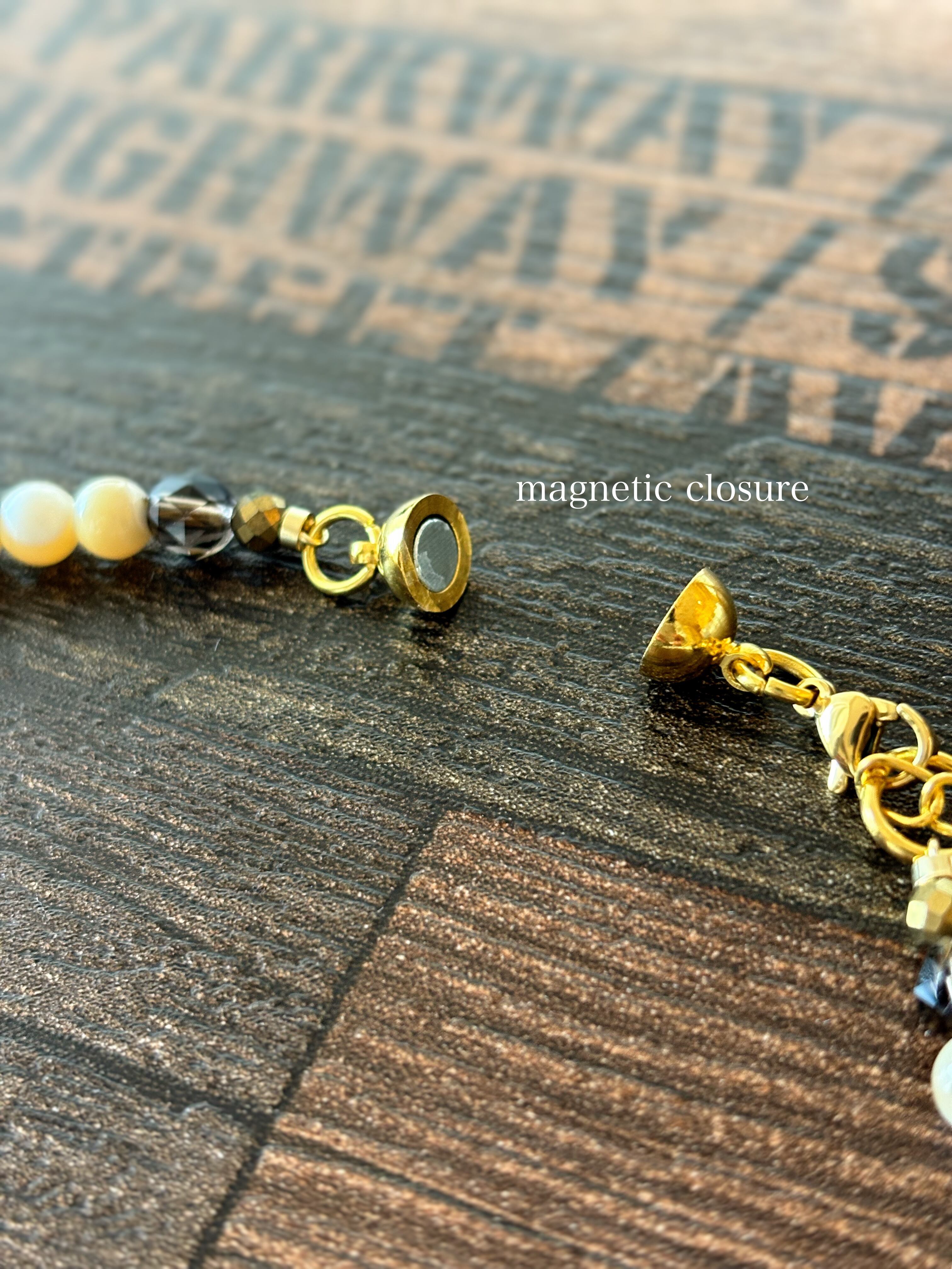 こちらはパープルマイカとマザーオブパールを合わせた魔除け・健康運UPの